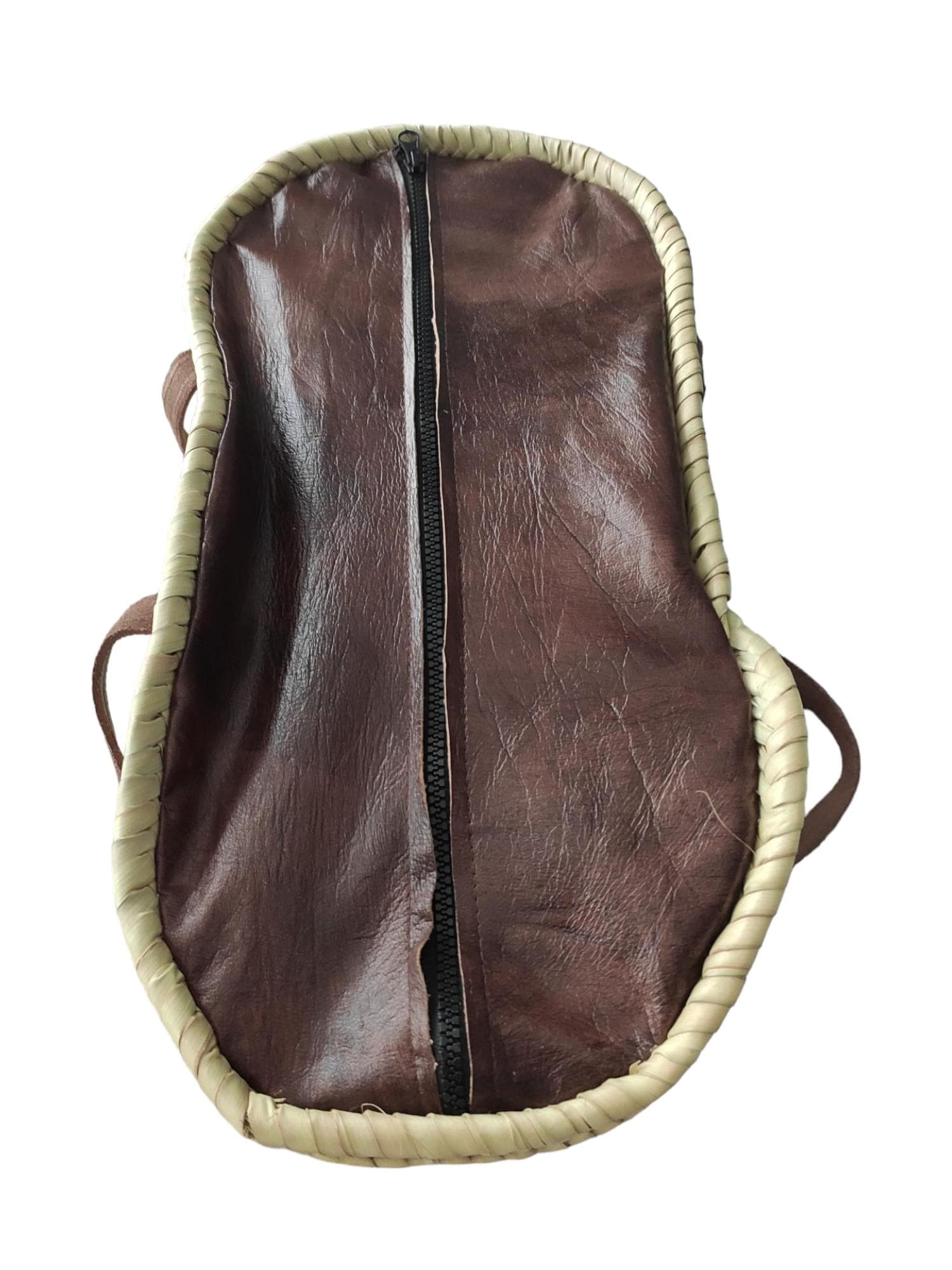 Absolutely unique, beautiful Ibiza basket bag, handmade, sturdy and robust, woven from palm leaves, with long, flat shoulder straps made of genuine leather.