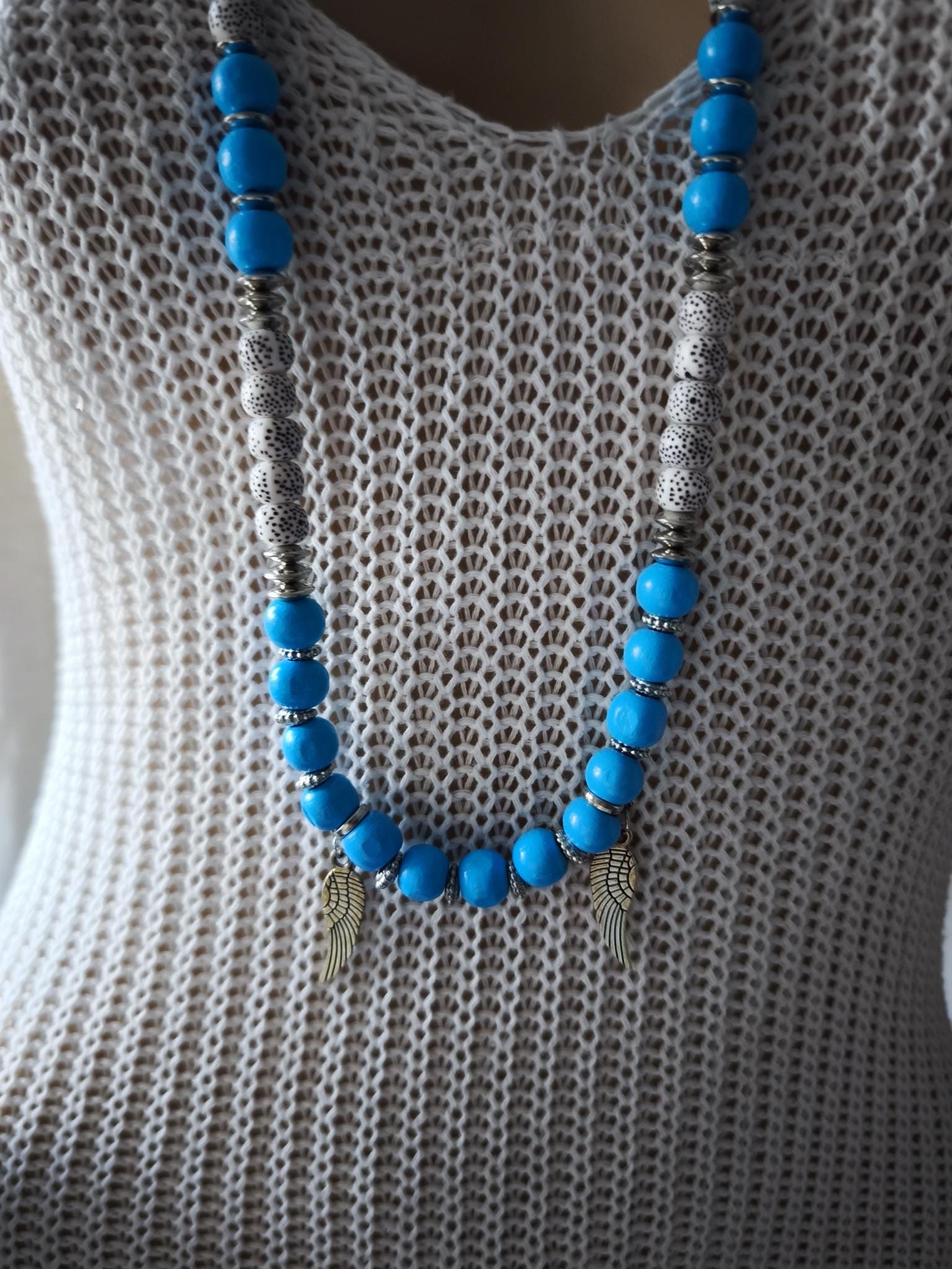 Beautiful boho necklace made of wood and acrylic beads.