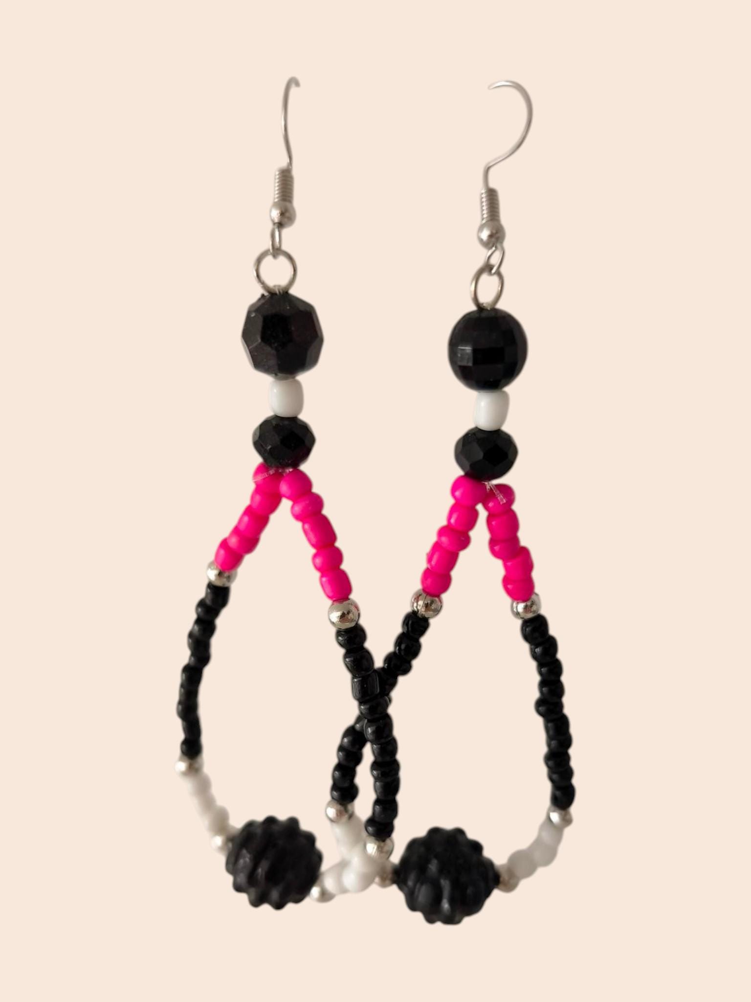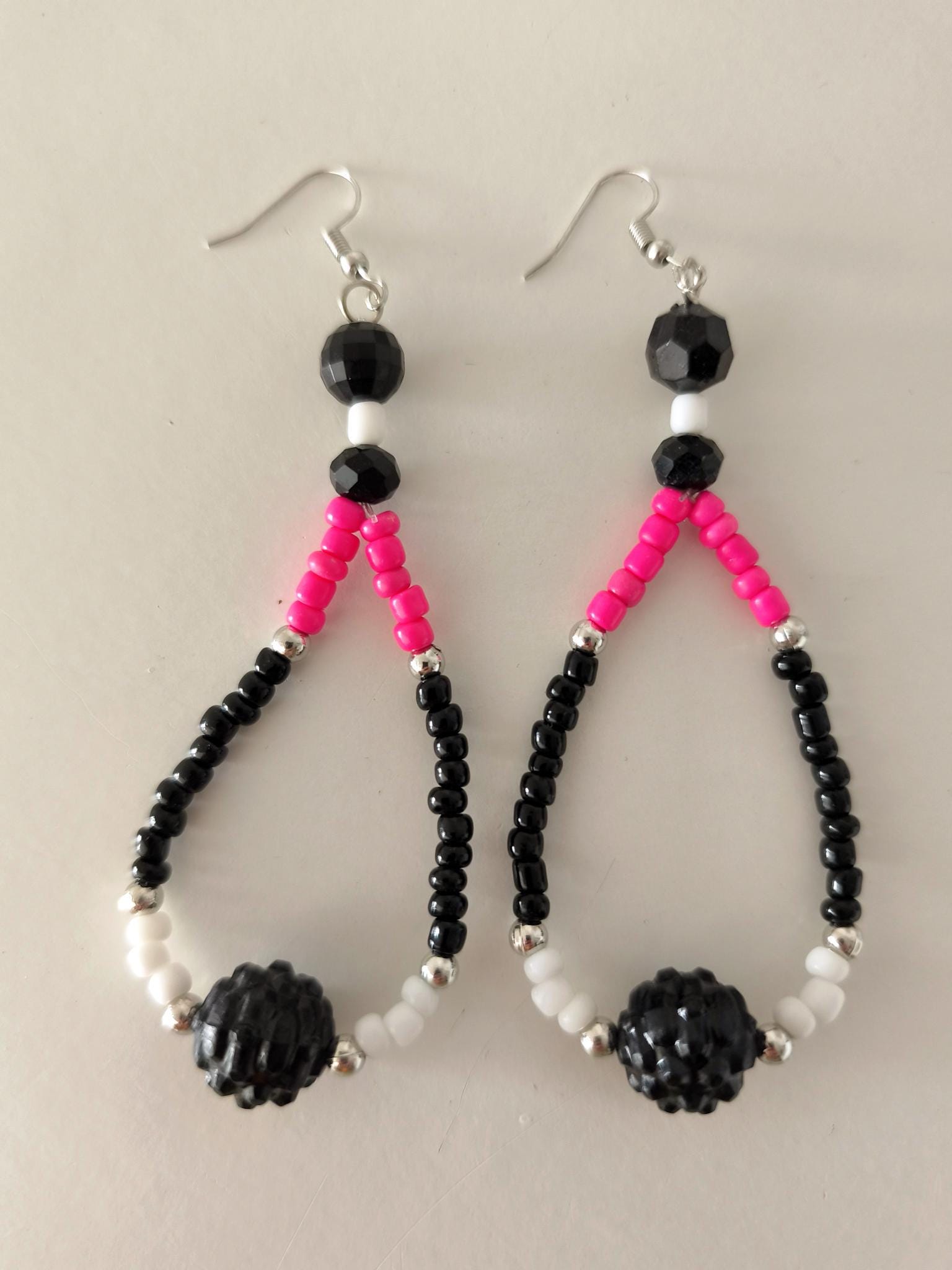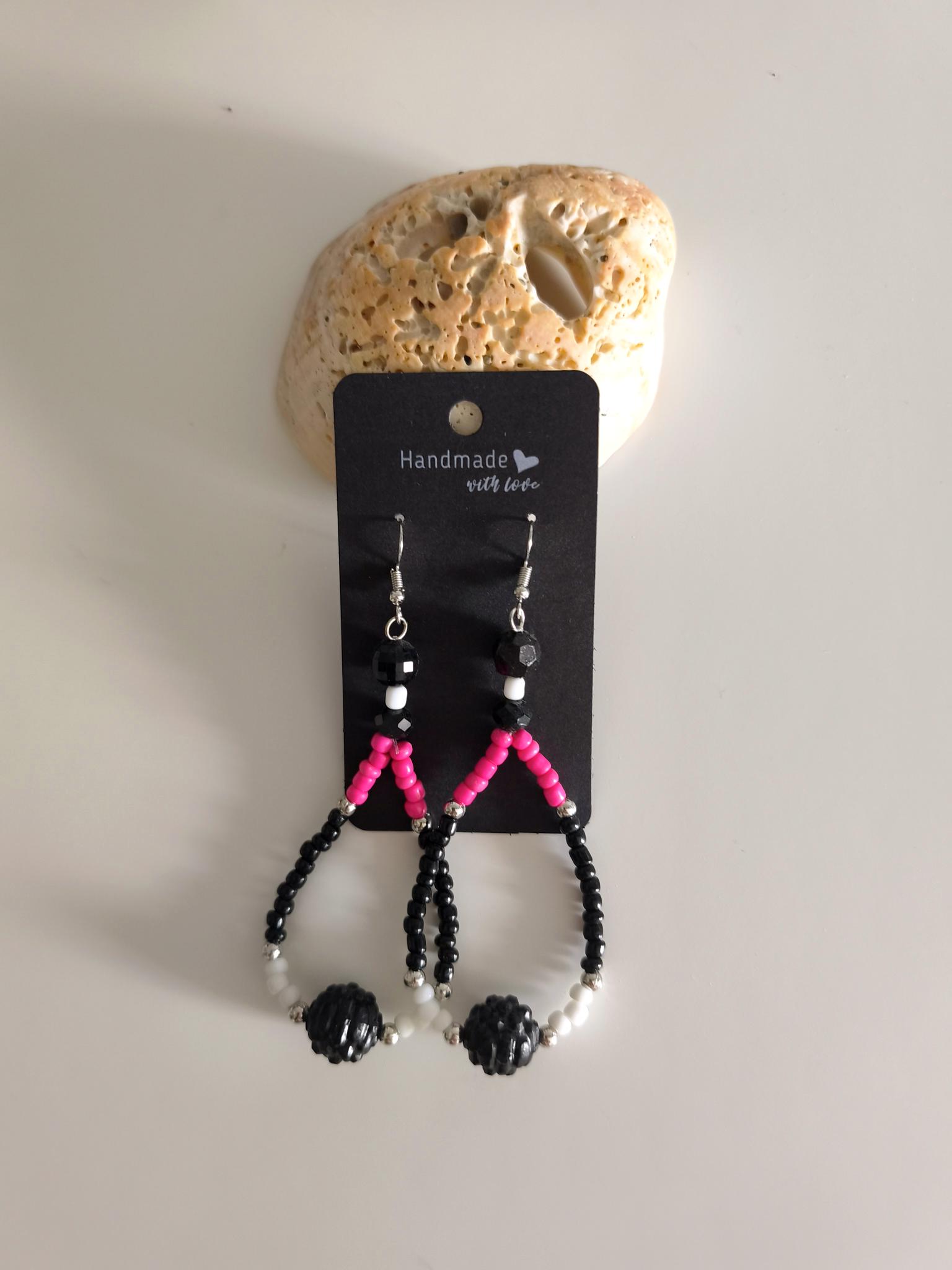 Pretty boho earrings in Ibiza style, with small silicone stoppers at the back to prevent loss. Available in beautiful black, white, and pink.