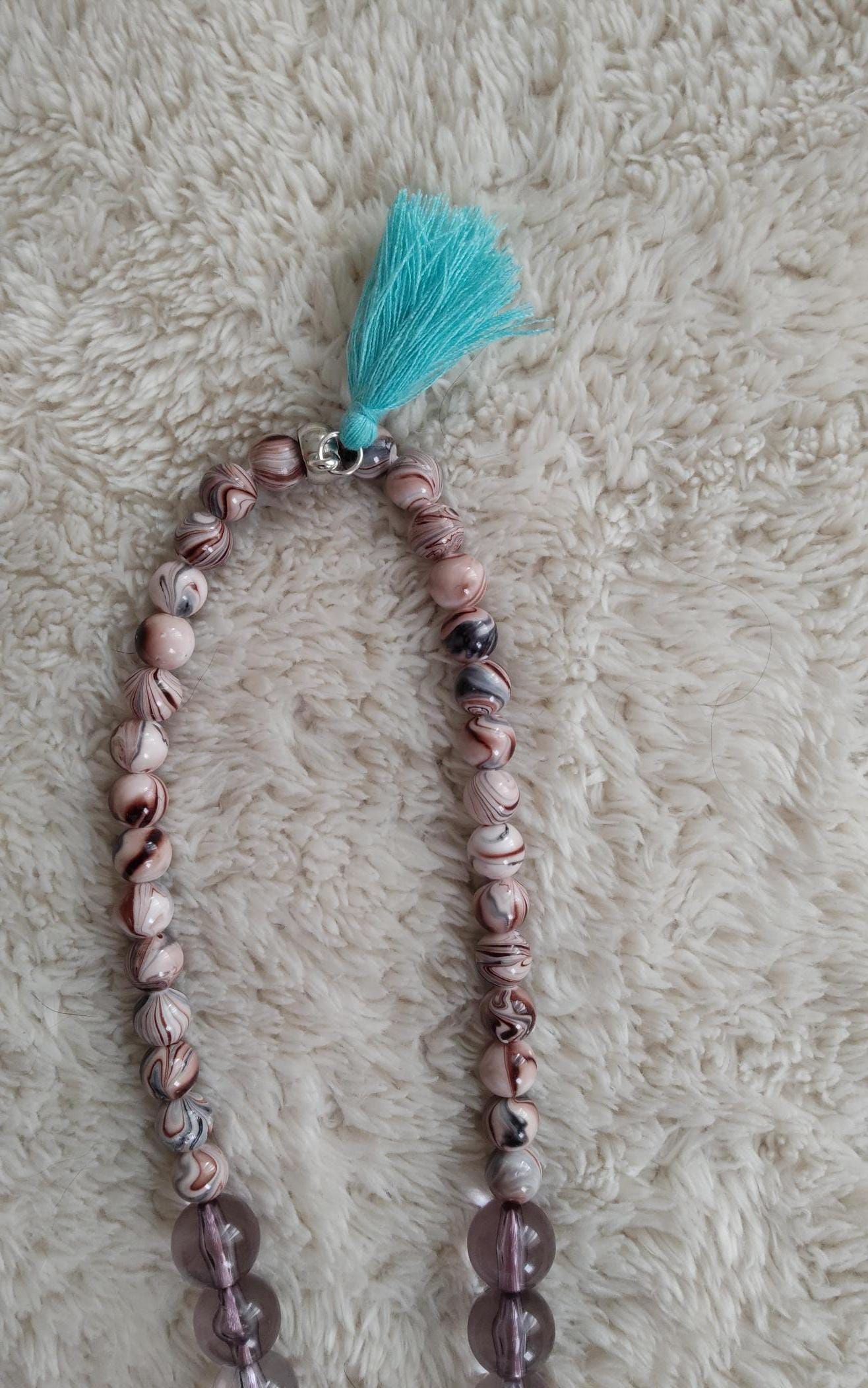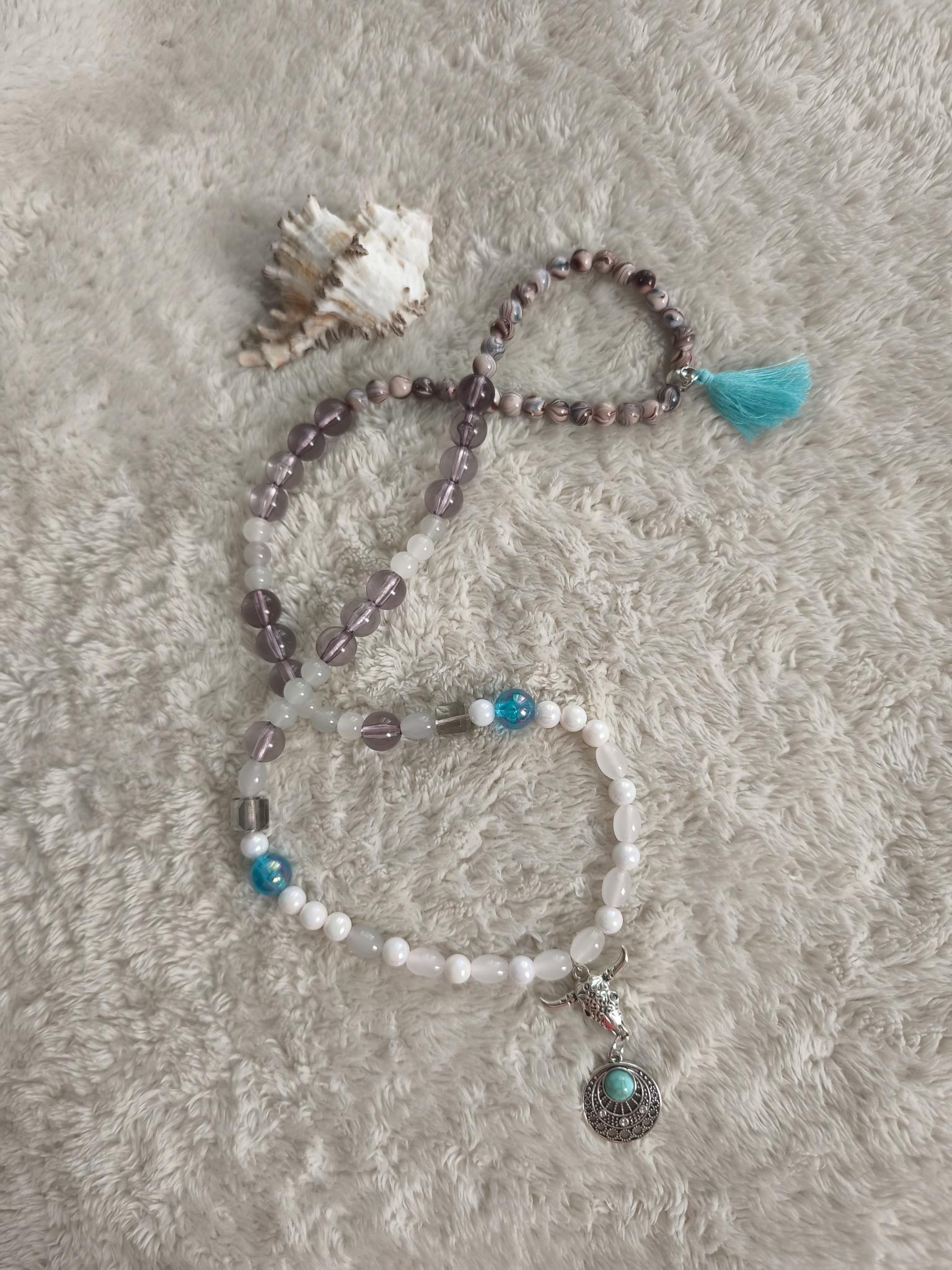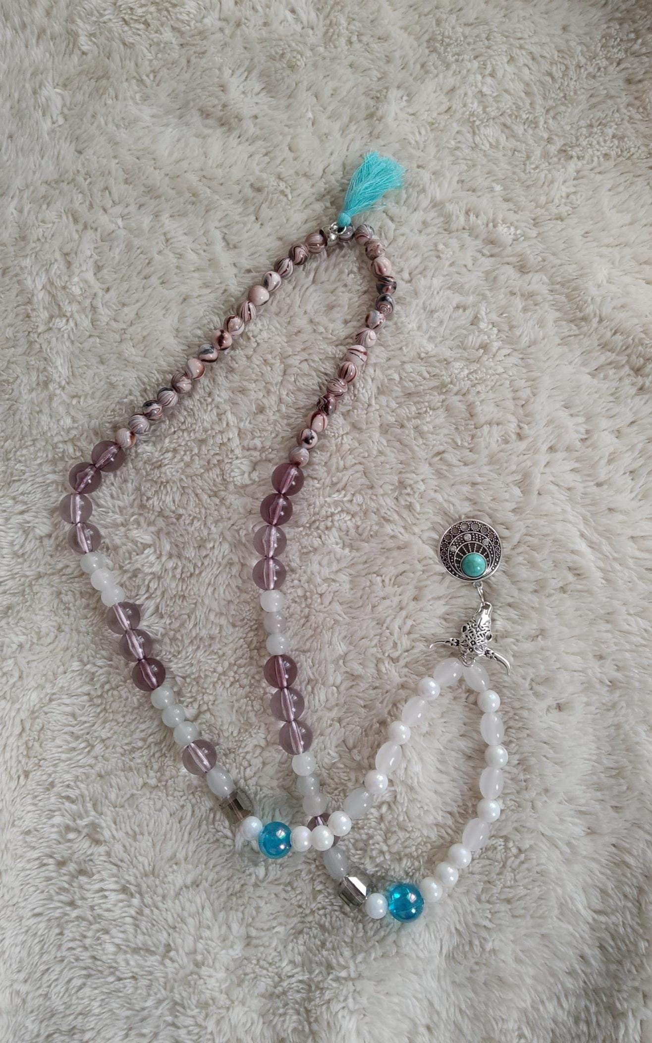 IBIZA BOHO necklace with a bull's head and boho pendant in silver. Acrylic beads with a glass look. Summery colors in white, turquoise, and beige. A small turquoise pom-pom adorns the nape of the neck. Sturdy material. Simply slip it on and you're done.