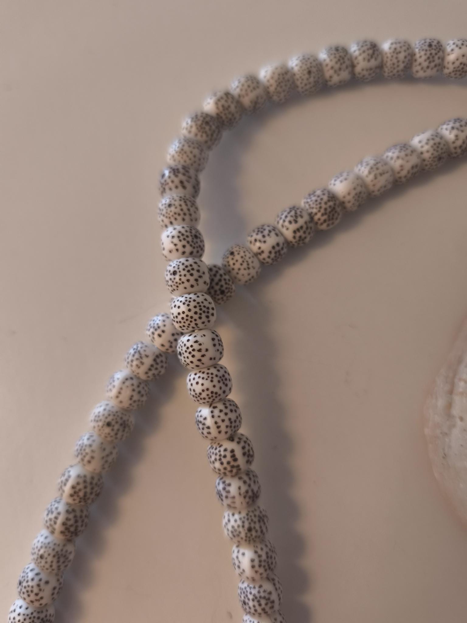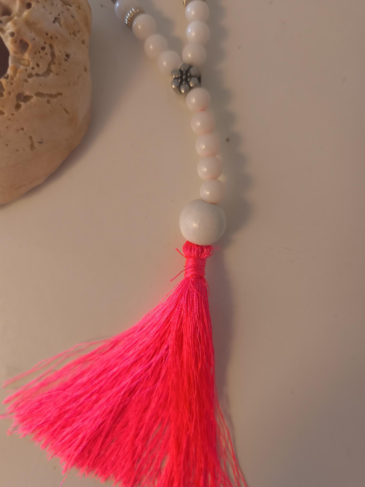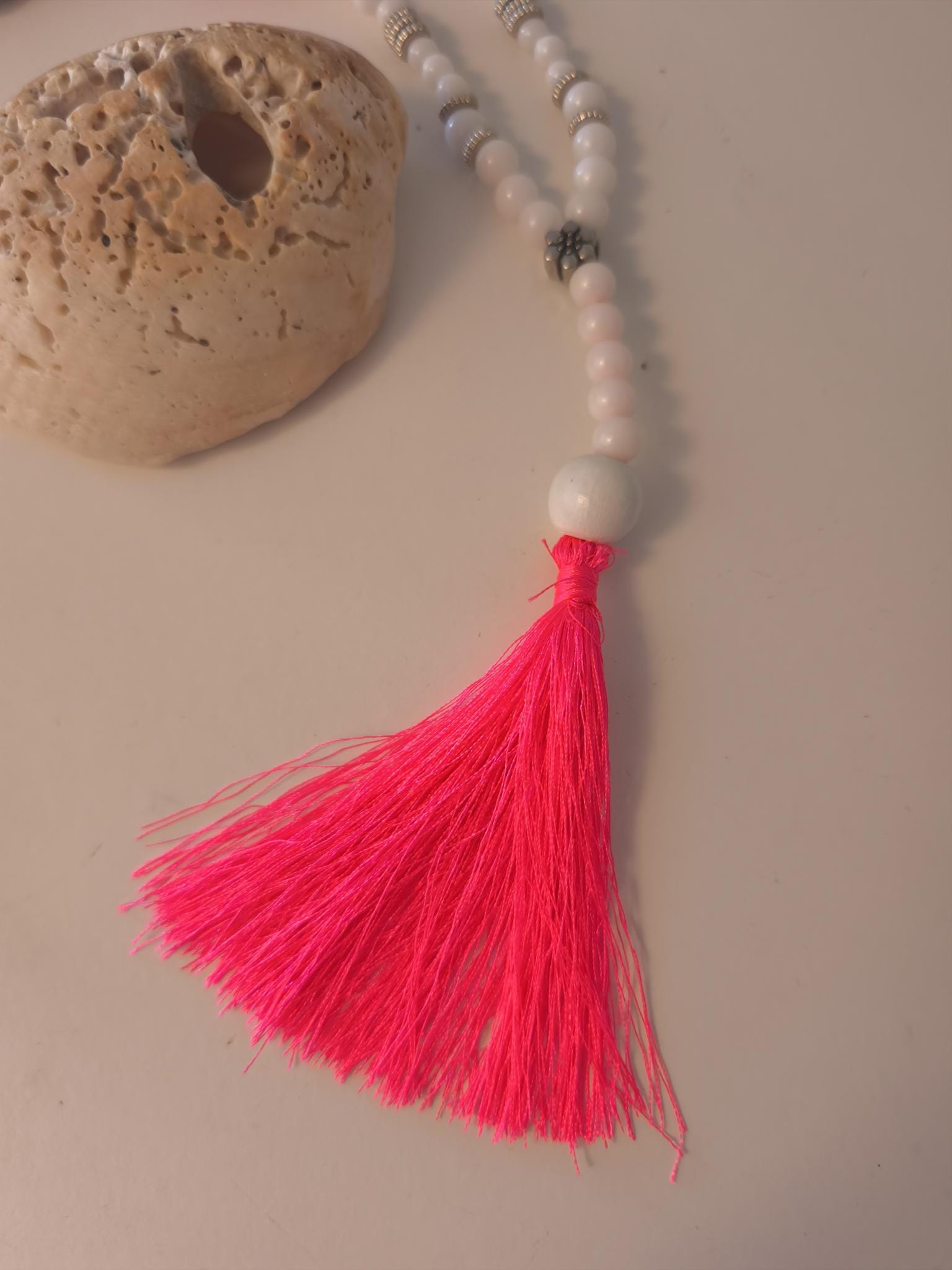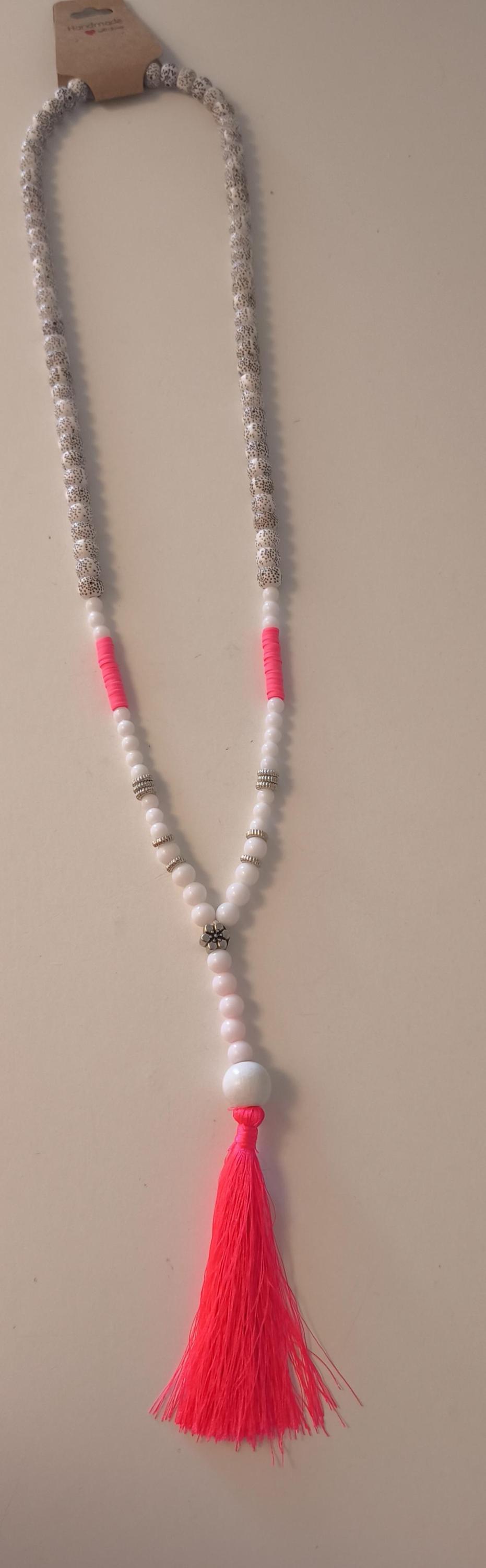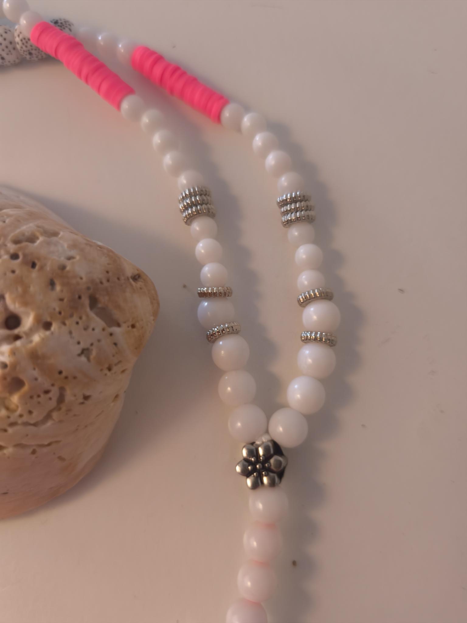 Silver accessories further enhance this pretty, unique necklace.