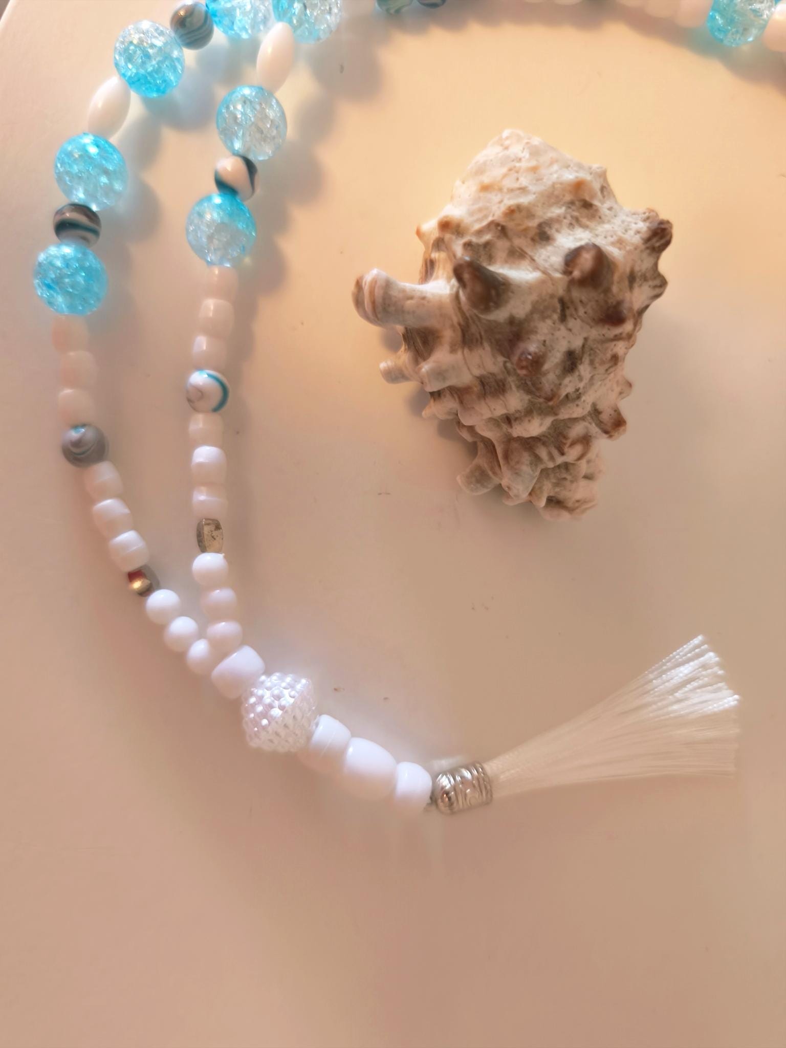 Beautiful, lightweight IBIZA Boho XXL necklace made from acrylic beads. Lightweight material. No clasp – just slip it on. Sturdy, firm band, no stretch.