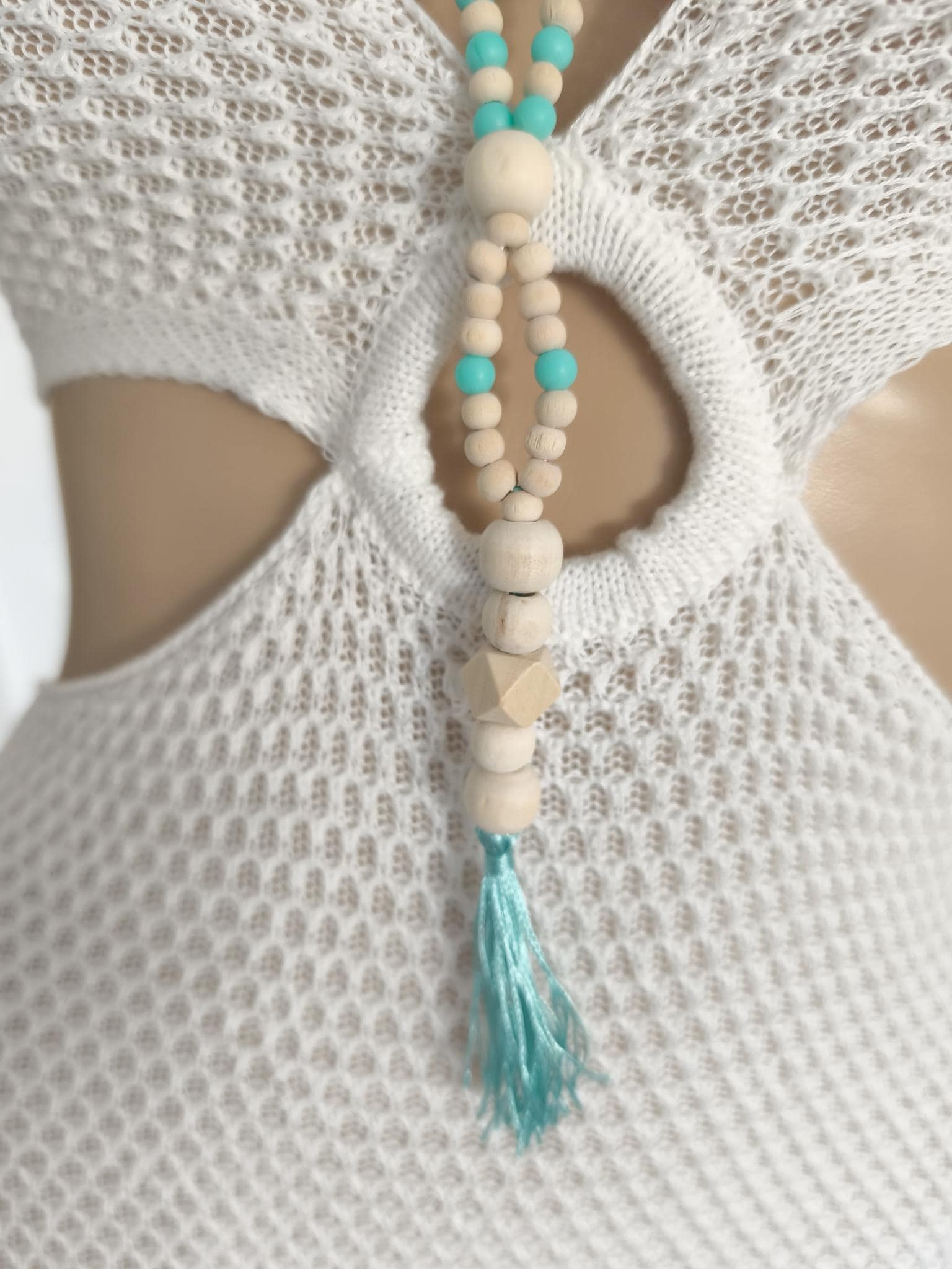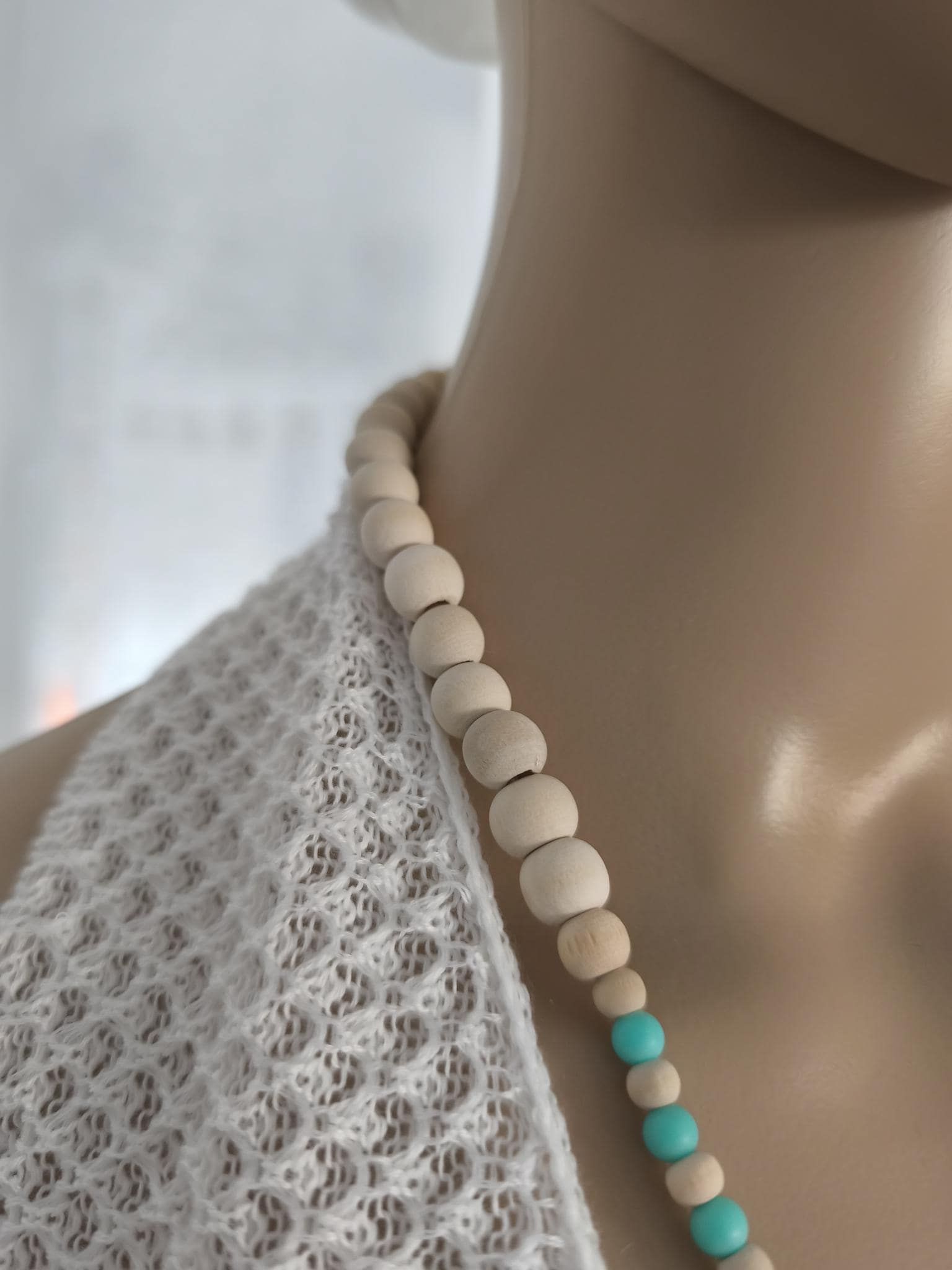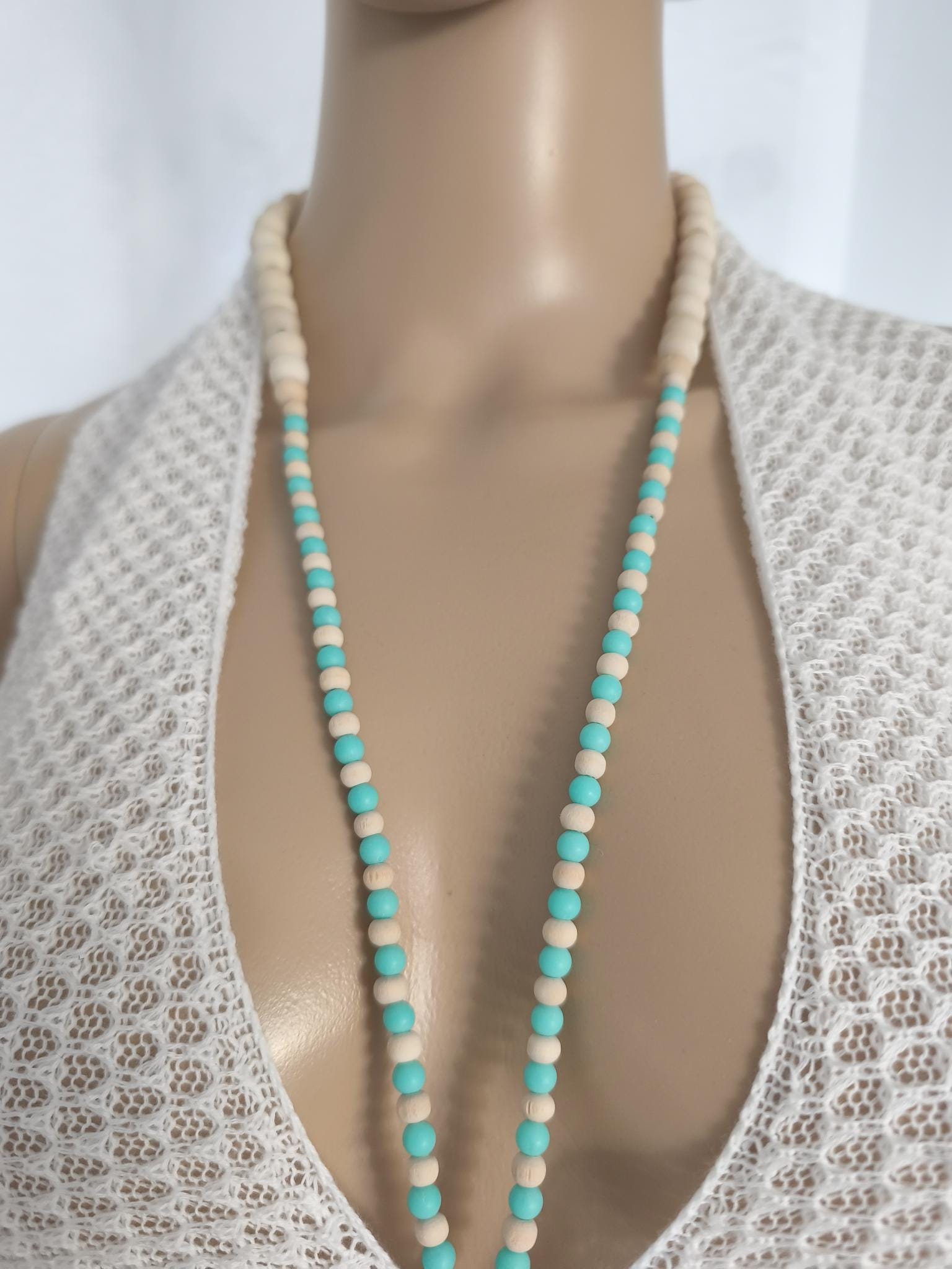 Summery boho style - wooden beads accented with turquoise acrylic beads.