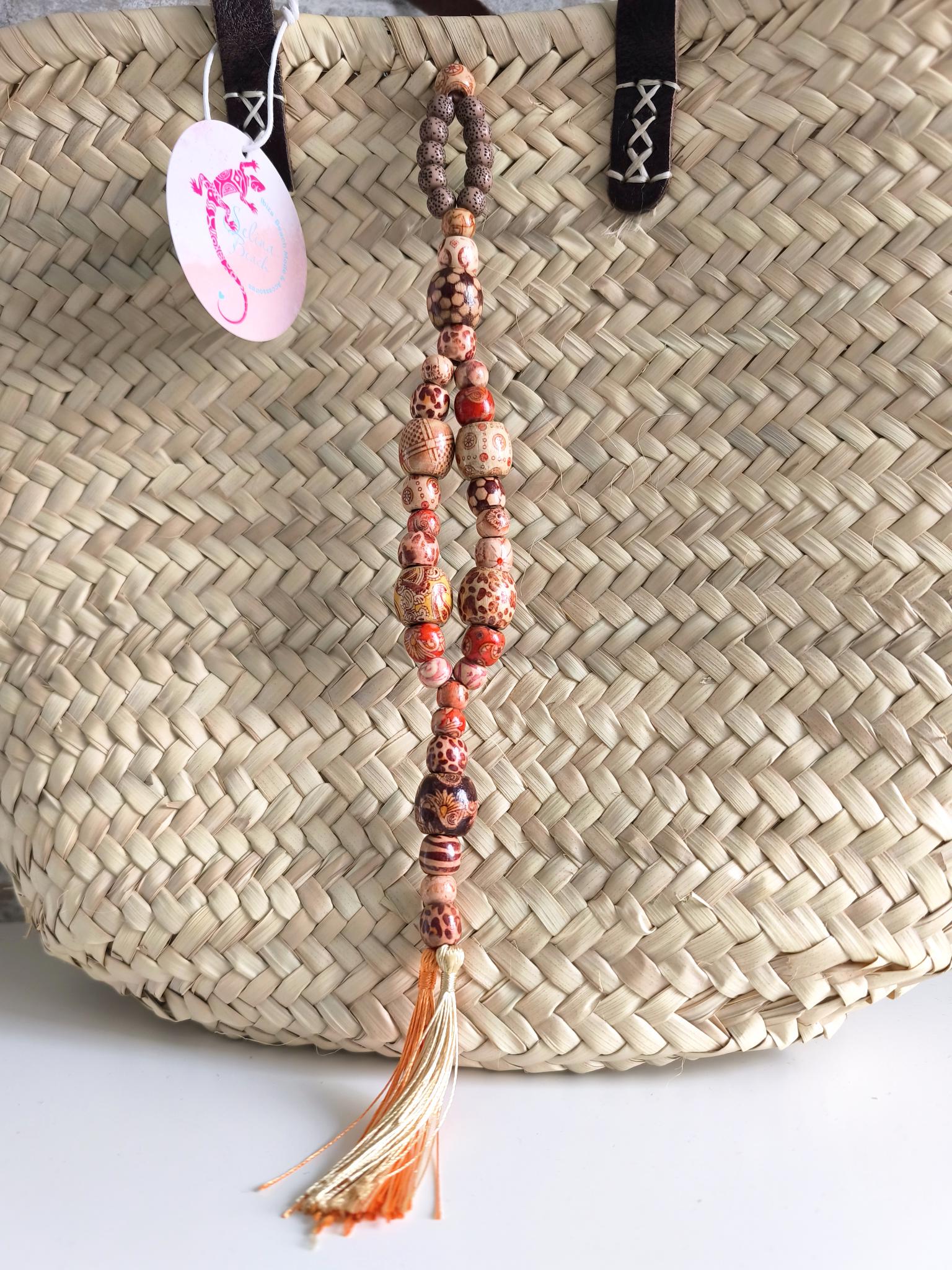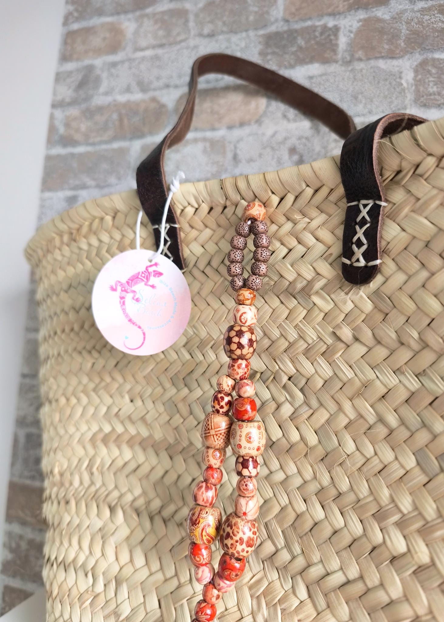 Made from palm leaves (from the Netherlands), handmade boho necklace in natural tones with tassel/pom-pom.