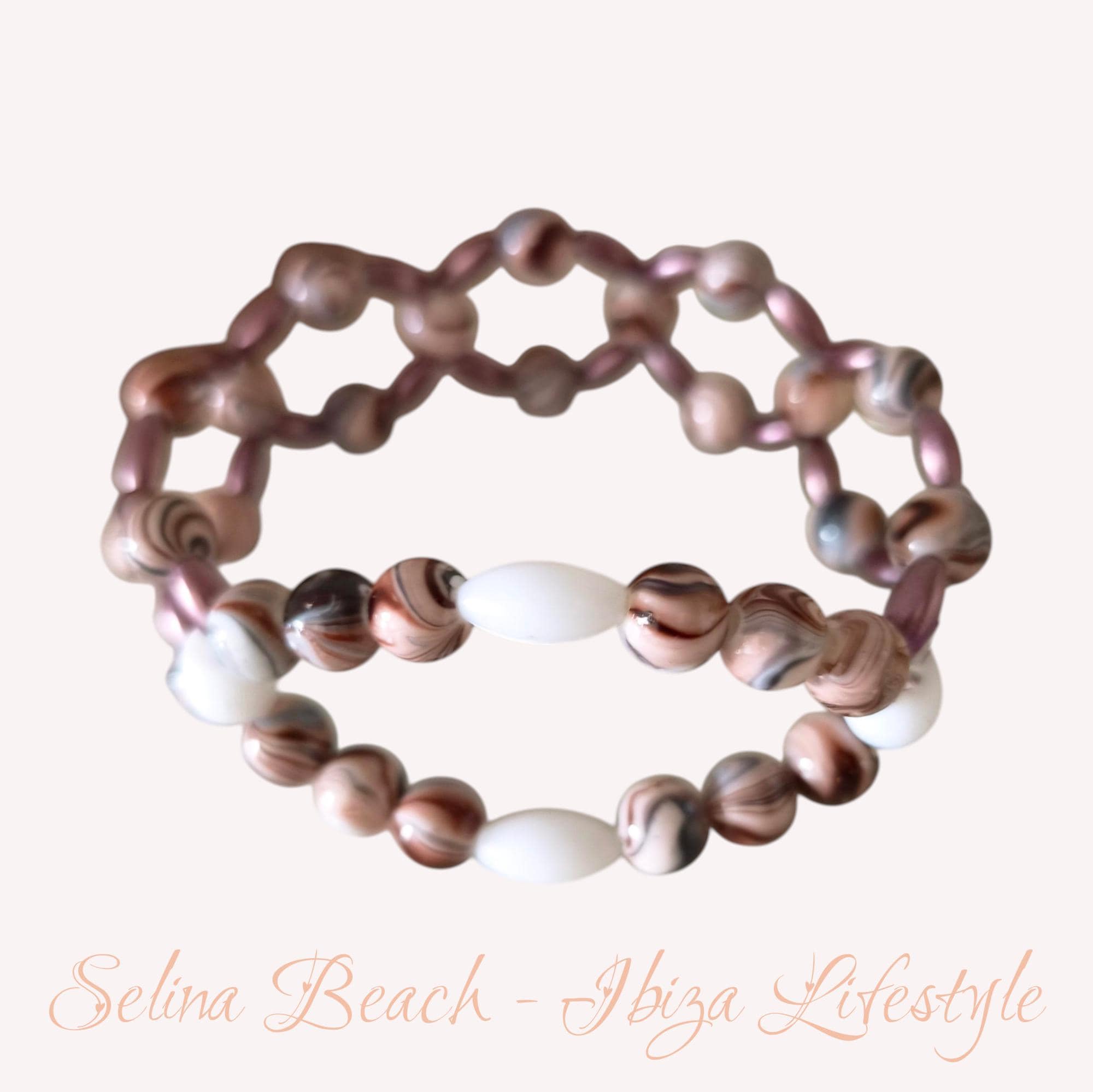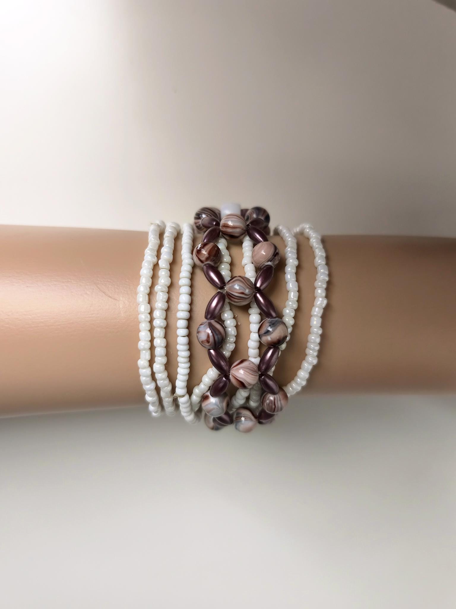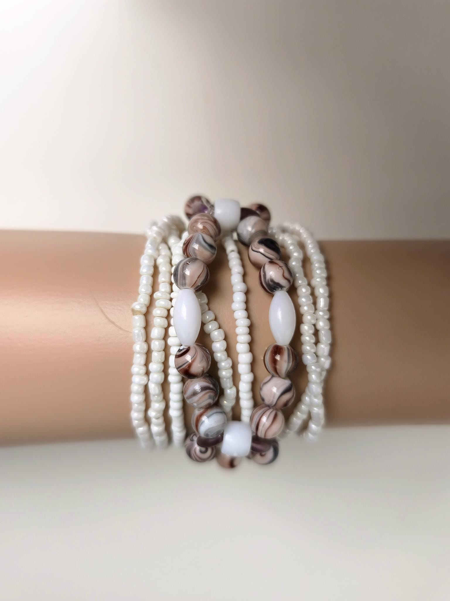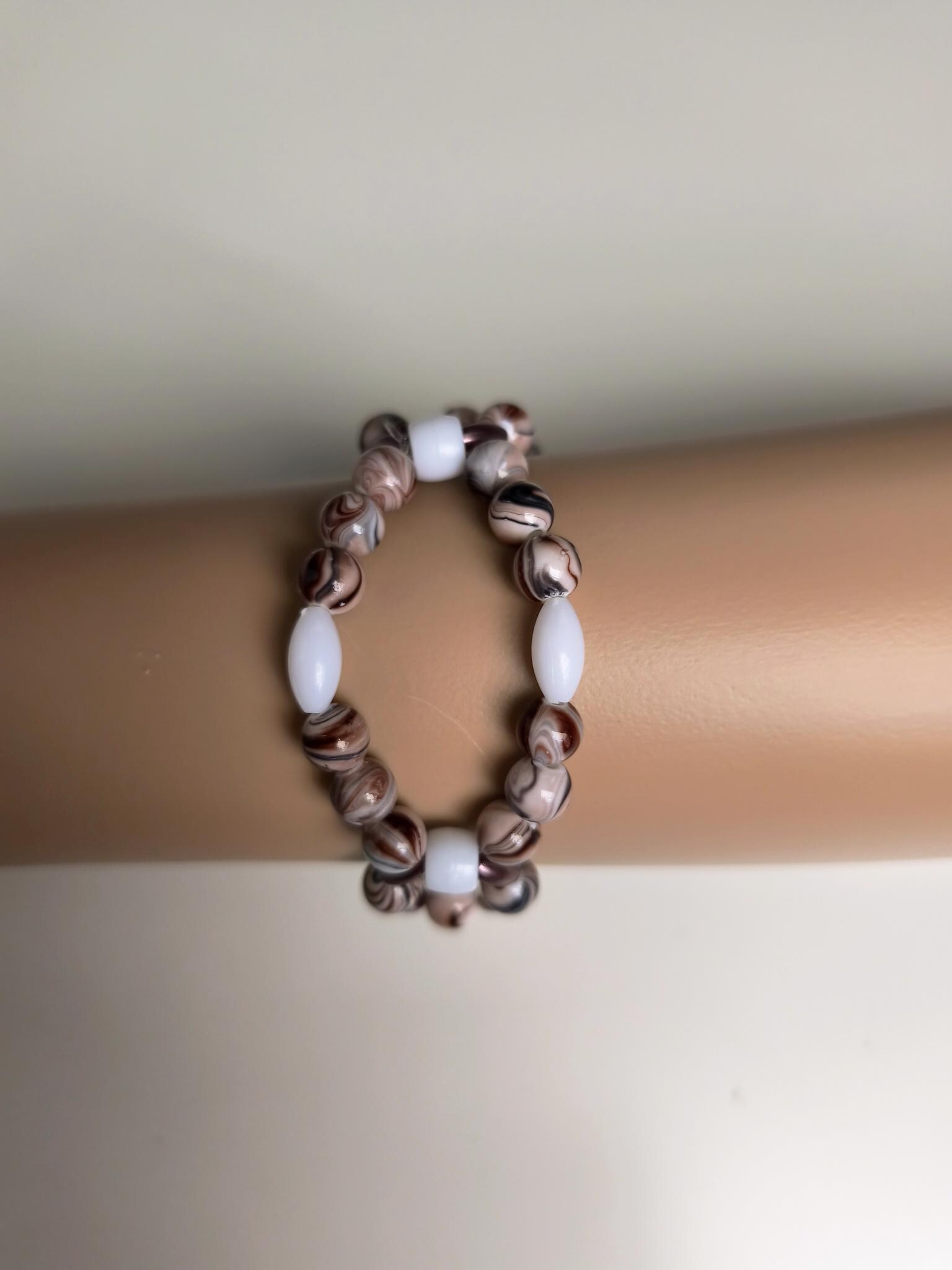 Modisches Boho Perlenarmband aus leichten Acrylperlen in der Farbe Brown/White.