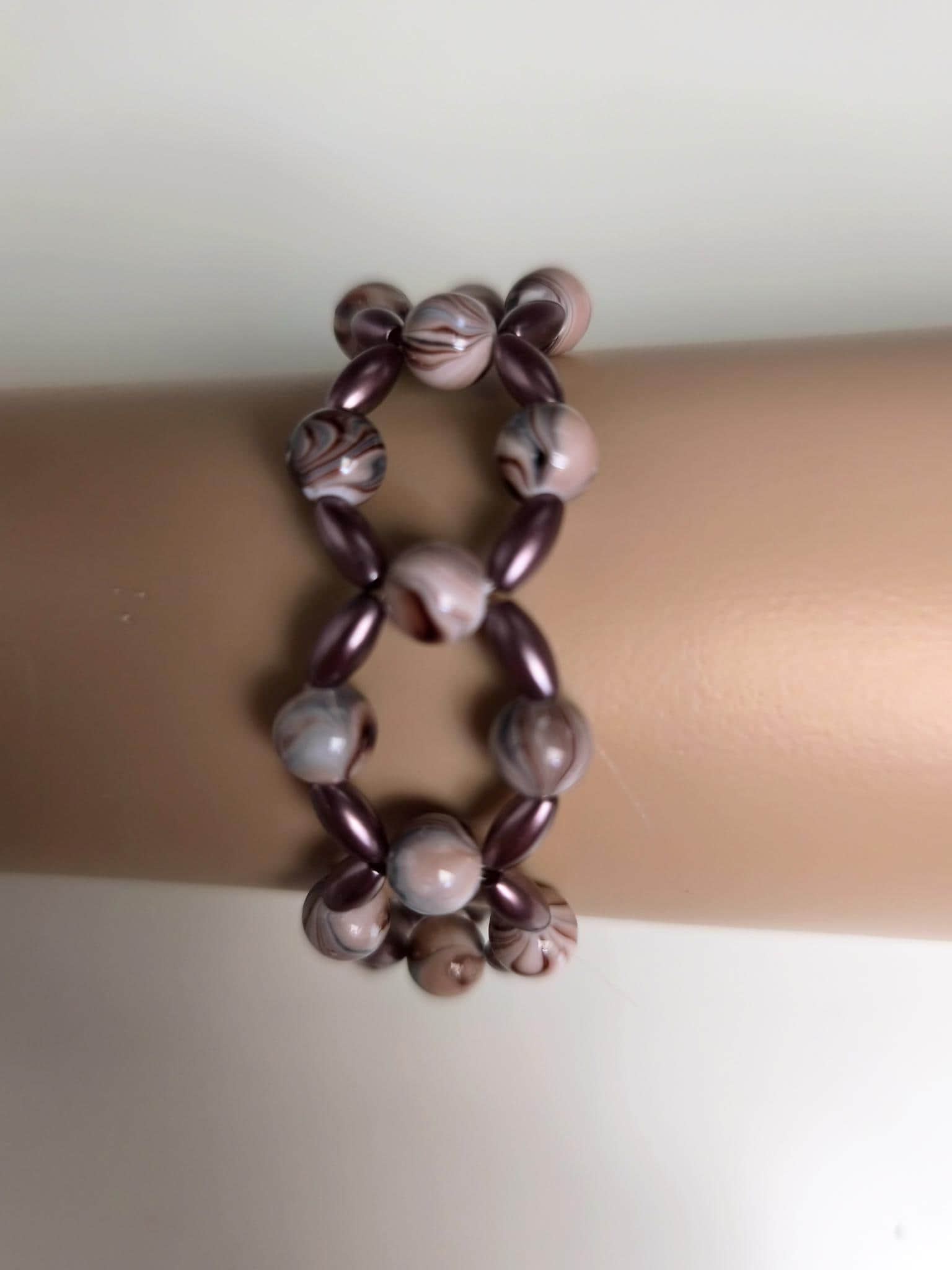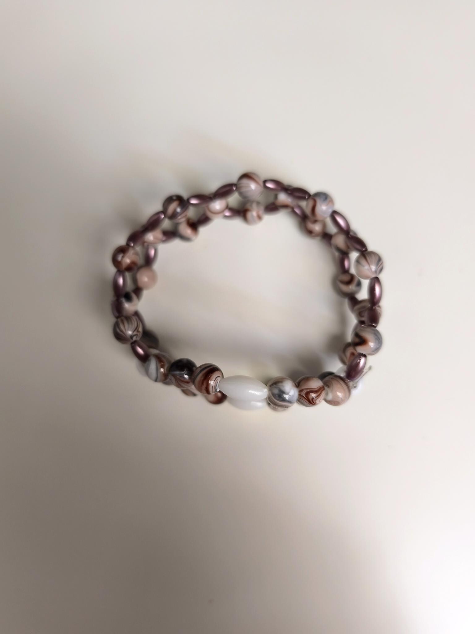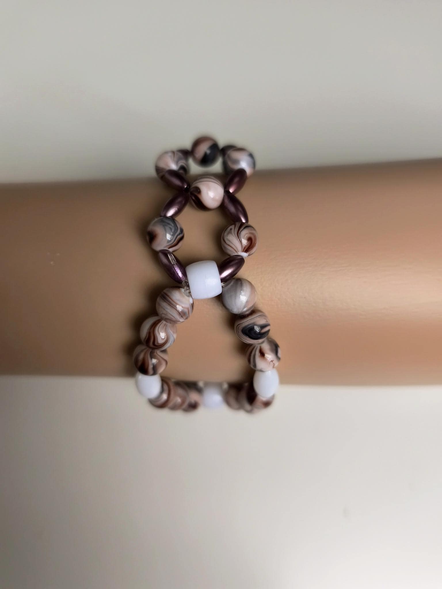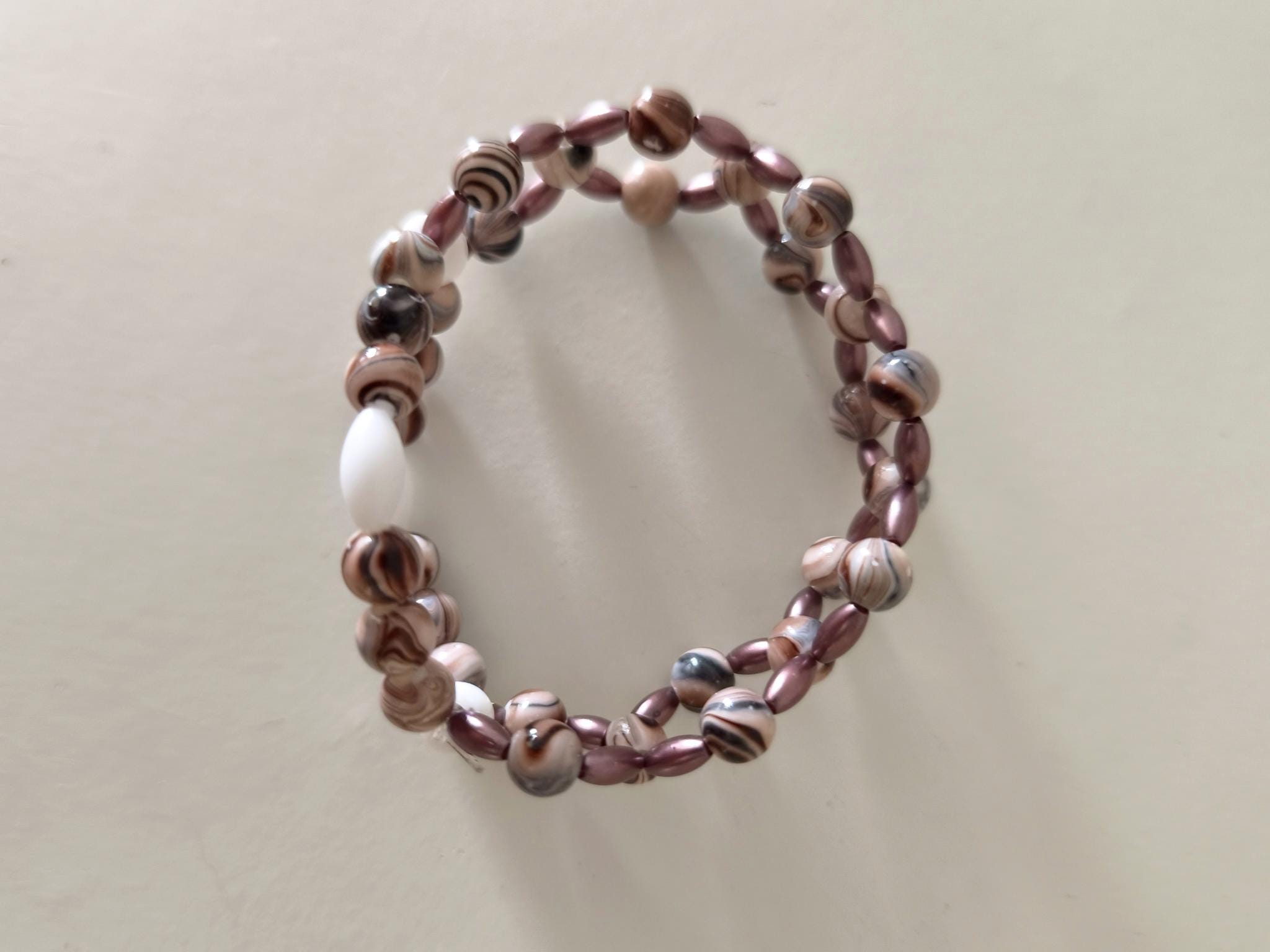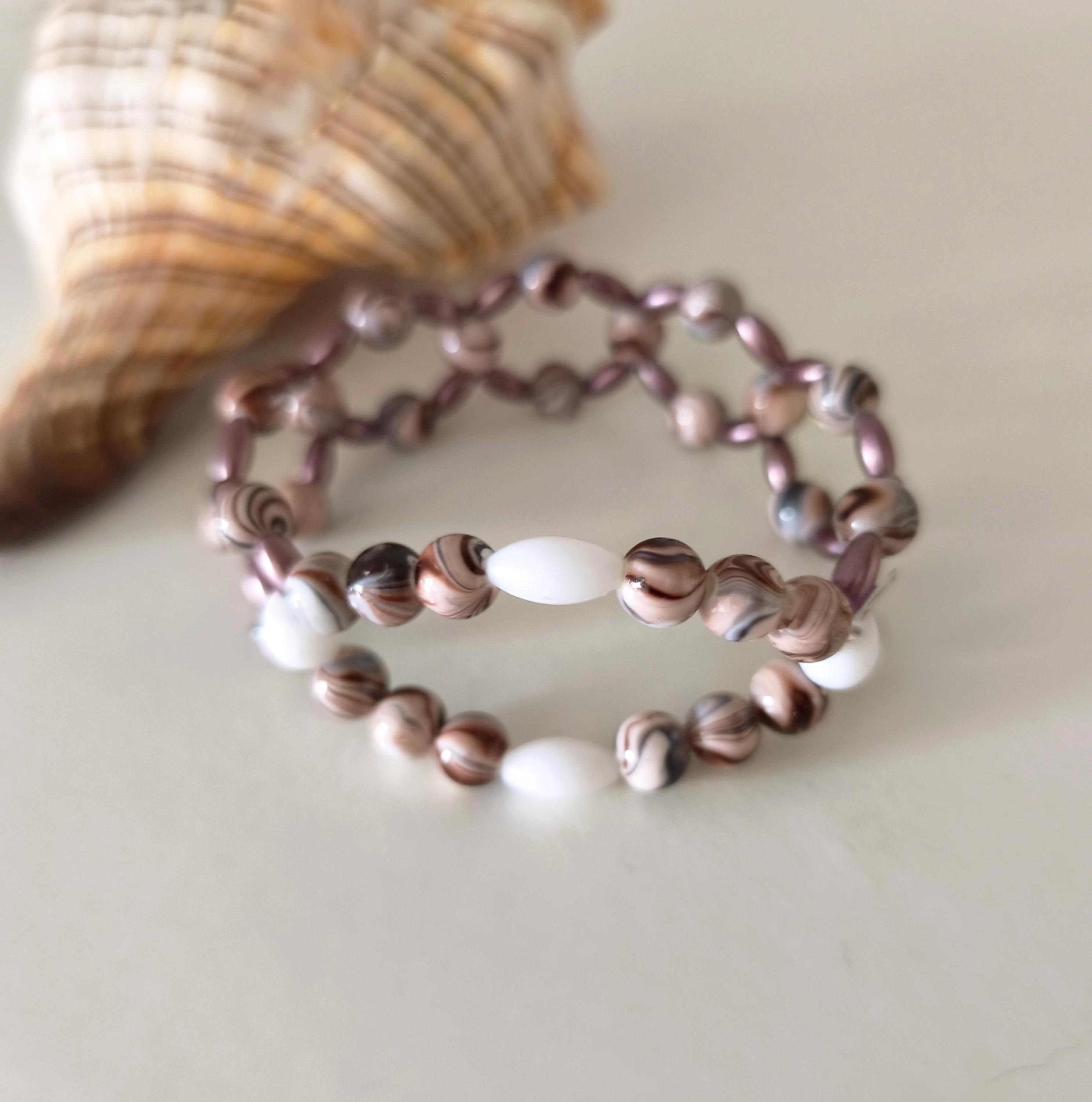 Modisches Boho Perlenarmband aus leichten Acrylperlen in der Farbe Brown/White.